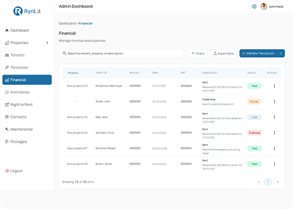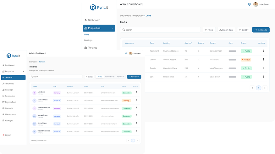 Organize your entire portfolio with clear visibility across properties, units, landlords, and tenants.
